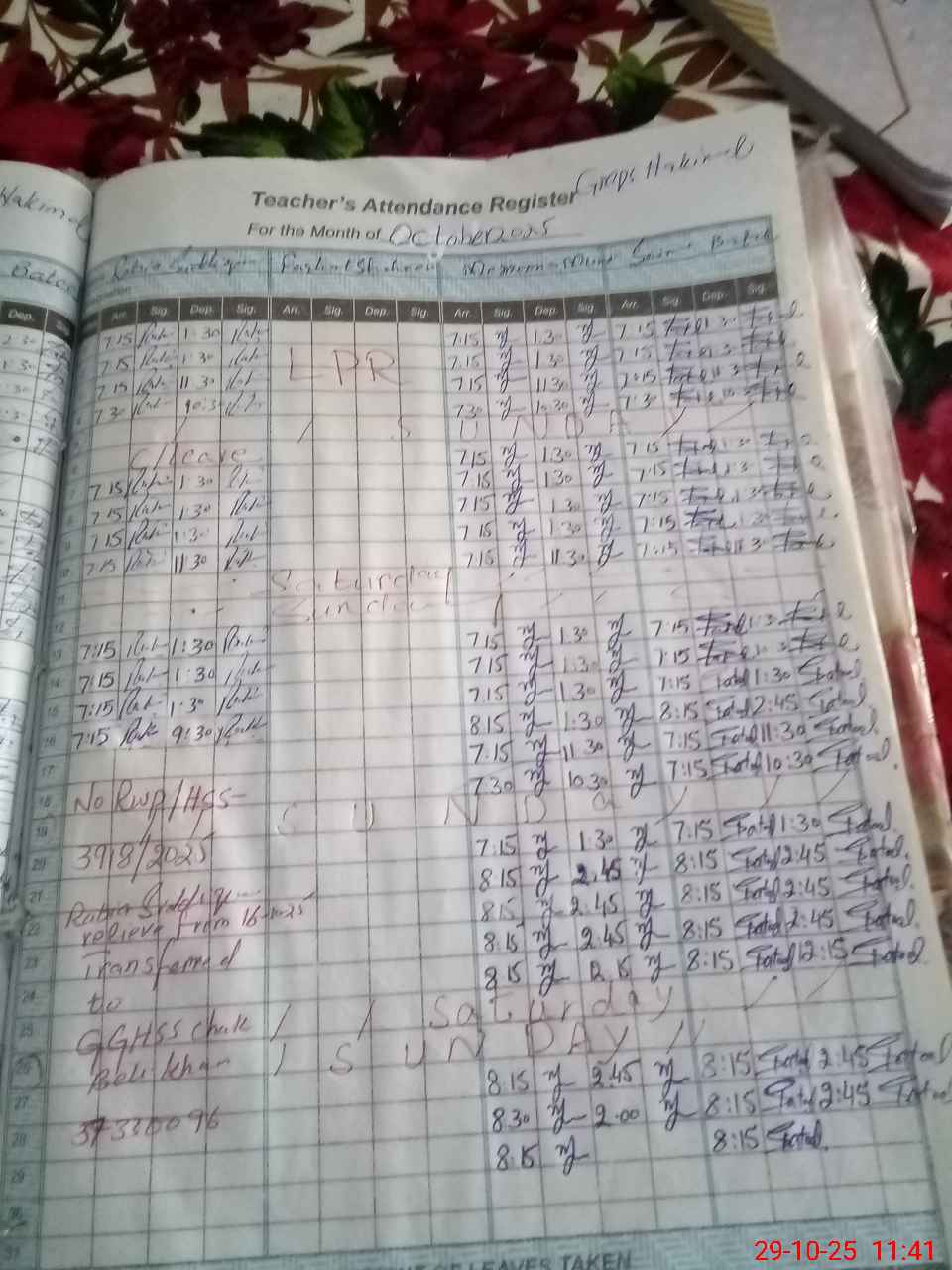 | Name: RA**** SI**** Designation: (School Headmaster's/Headmistress's) PST Phone/Cell Number: 03**** |
