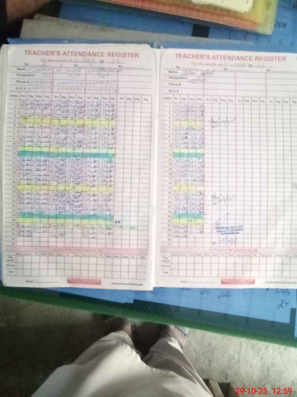 | CNIC | Full Name | Designation | R/C | Absence During Last Calender Month |