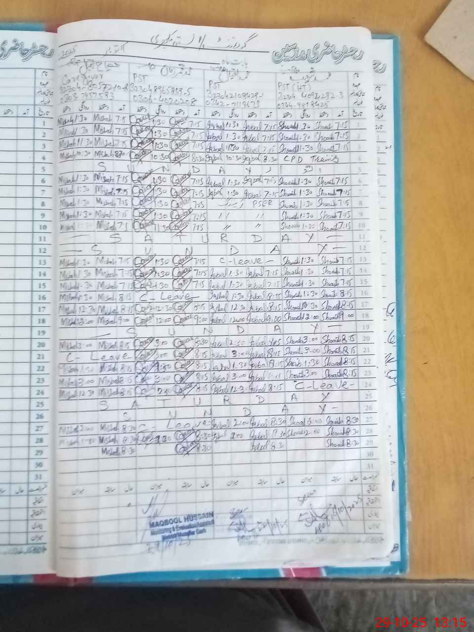 | CNIC | Full Name | Designation | R/C | Absence During Last Calender Month |