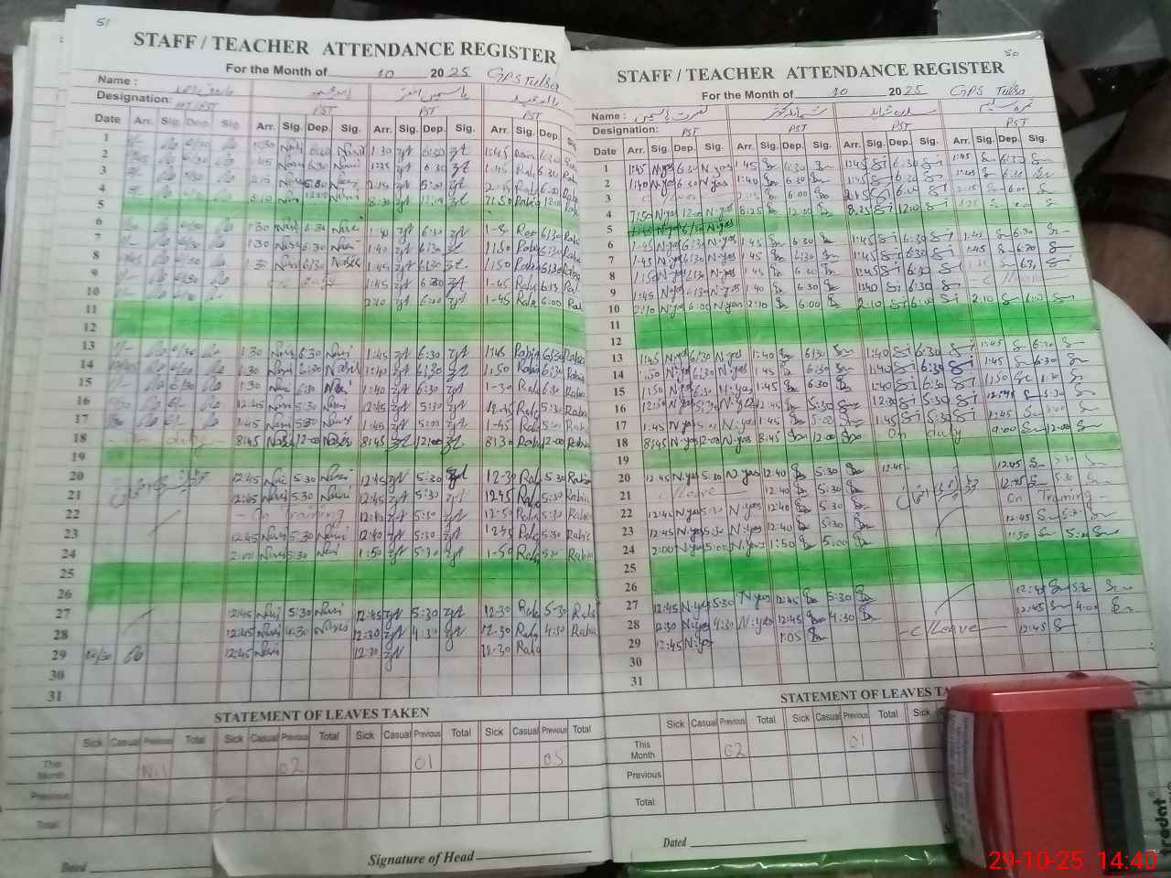 | Leave | Duty | Absent | Maternity | Medical | Ex- Pak |
