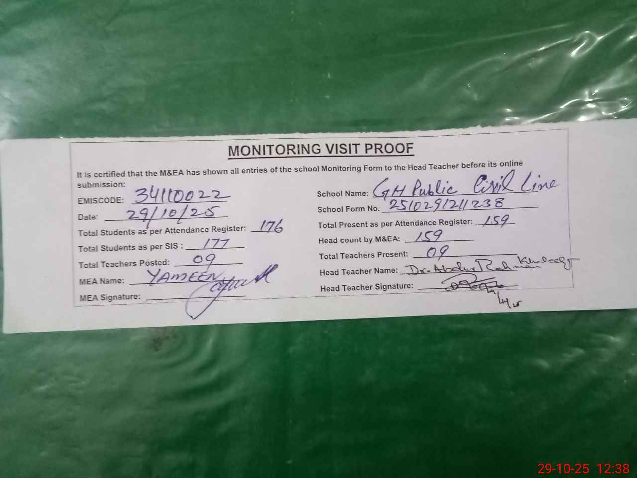 | EMIS Code: 34110022 | Name of School: GHS PUBLIC CIVIL LINE GUJRANWALA | |||