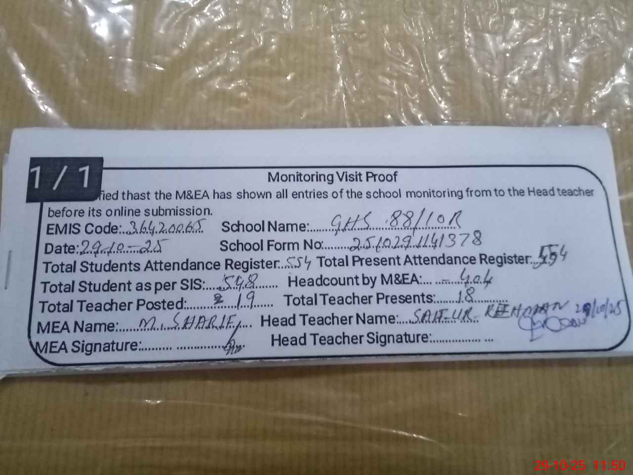 | EMIS Code: 36420065 | Name of School: GHS 88/10-R, KHANEWAL | |||