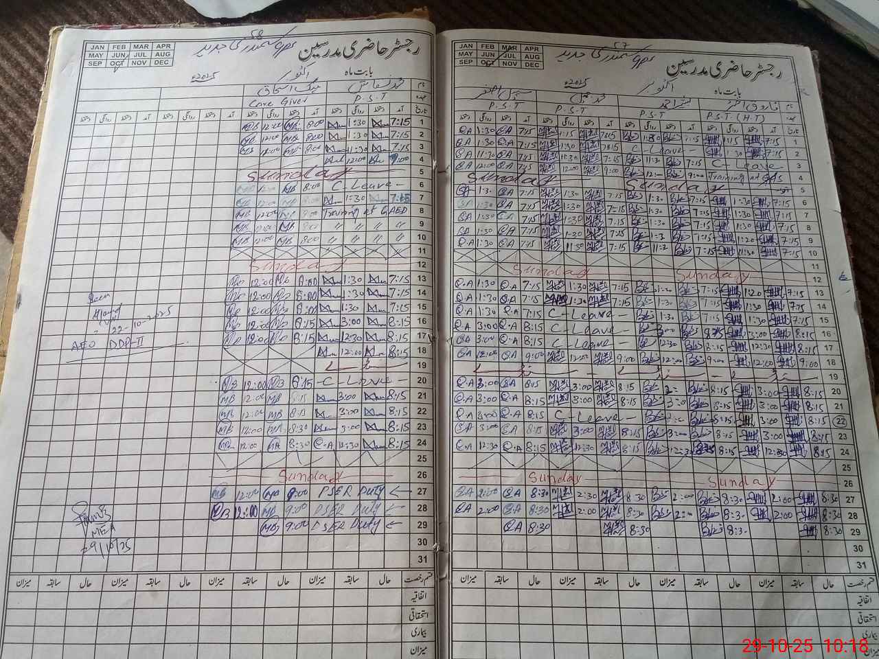 | CNIC | Full Name | Designation | R/C | Absence During Last Calender Month |