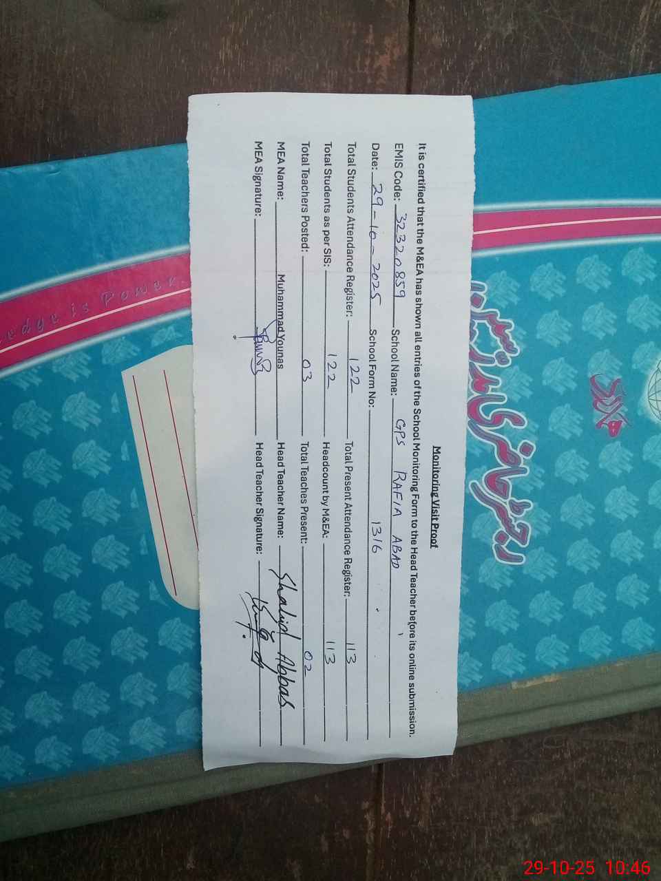 | EMIS Code: 32320859 | Name of School: GPS RAFIA ABAD | |||