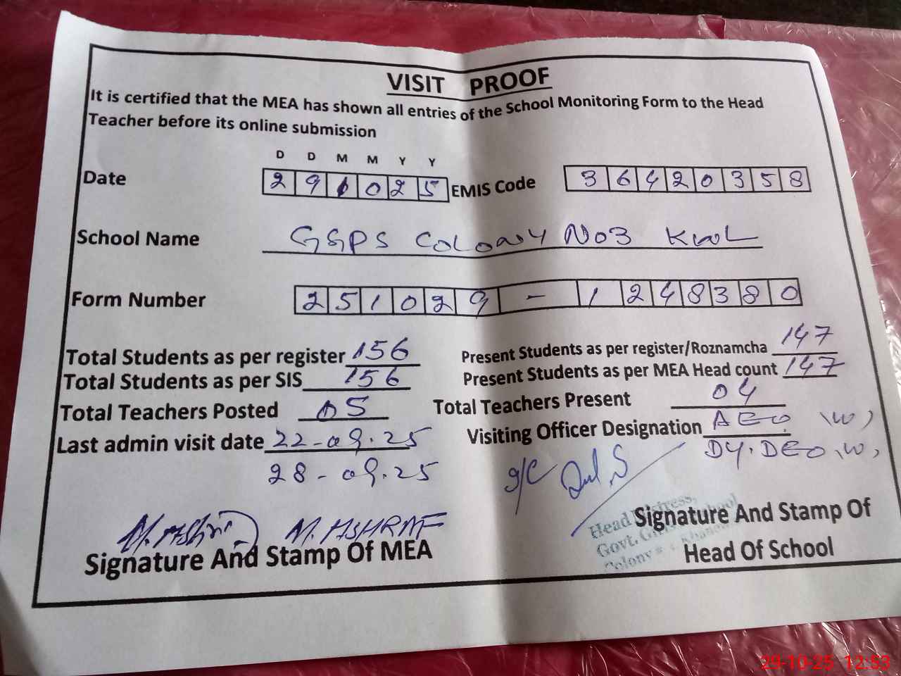 | EMIS Code: 36420358 | Name of School: GGPS COLONY NO.3 KHANEWAL | |||