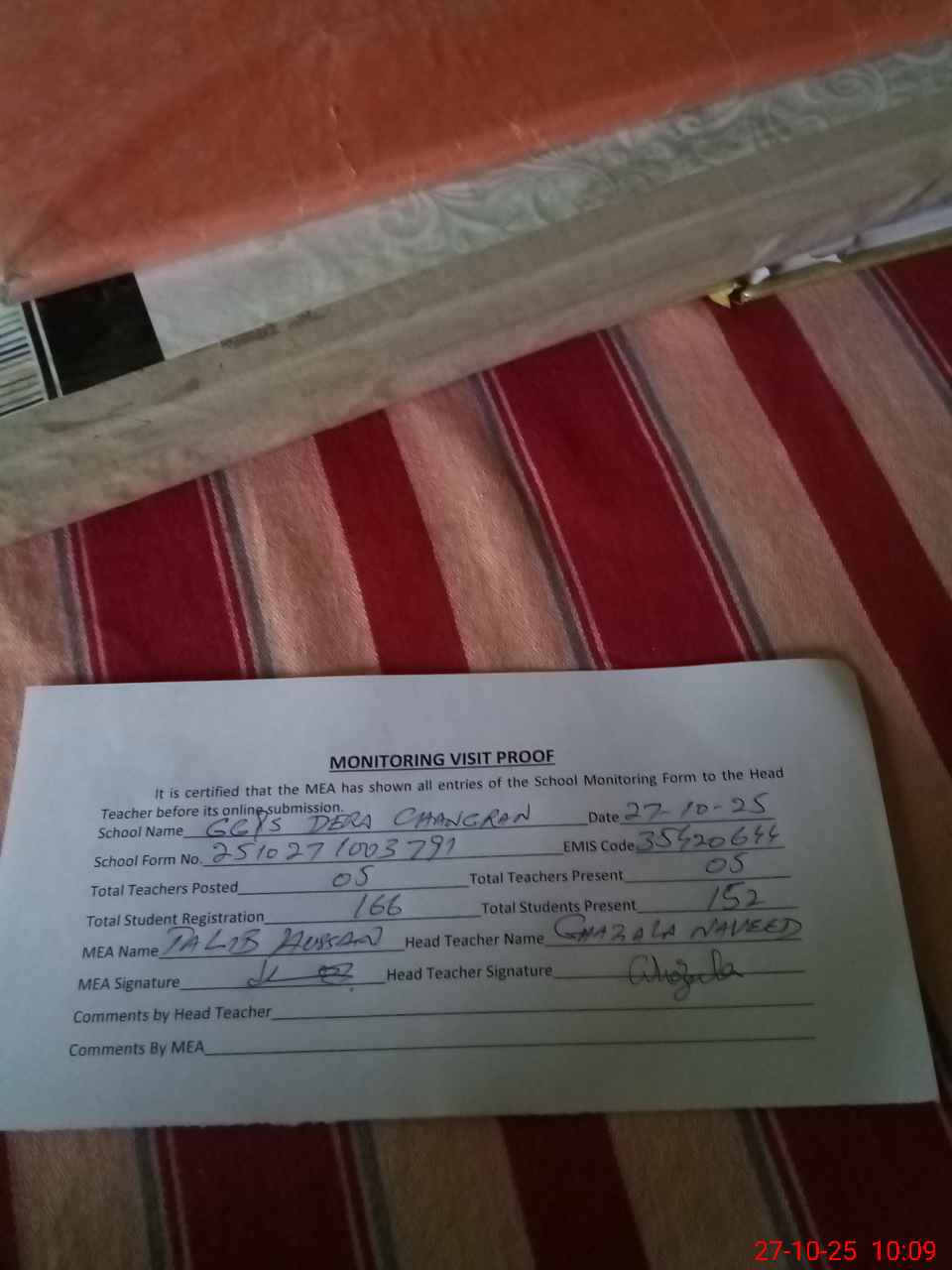 | EMIS Code: 35420644 | Name of School: GGPS DERA CHANGRAN | |||