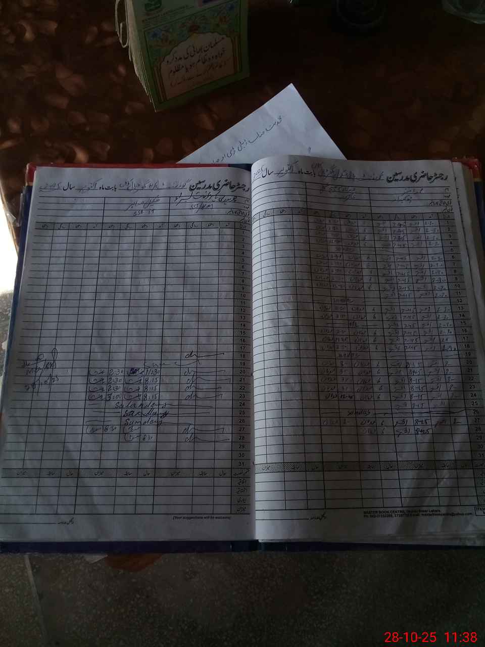 | CNIC | Full Name | Designation | R/C | Absence During Last Calender Month |