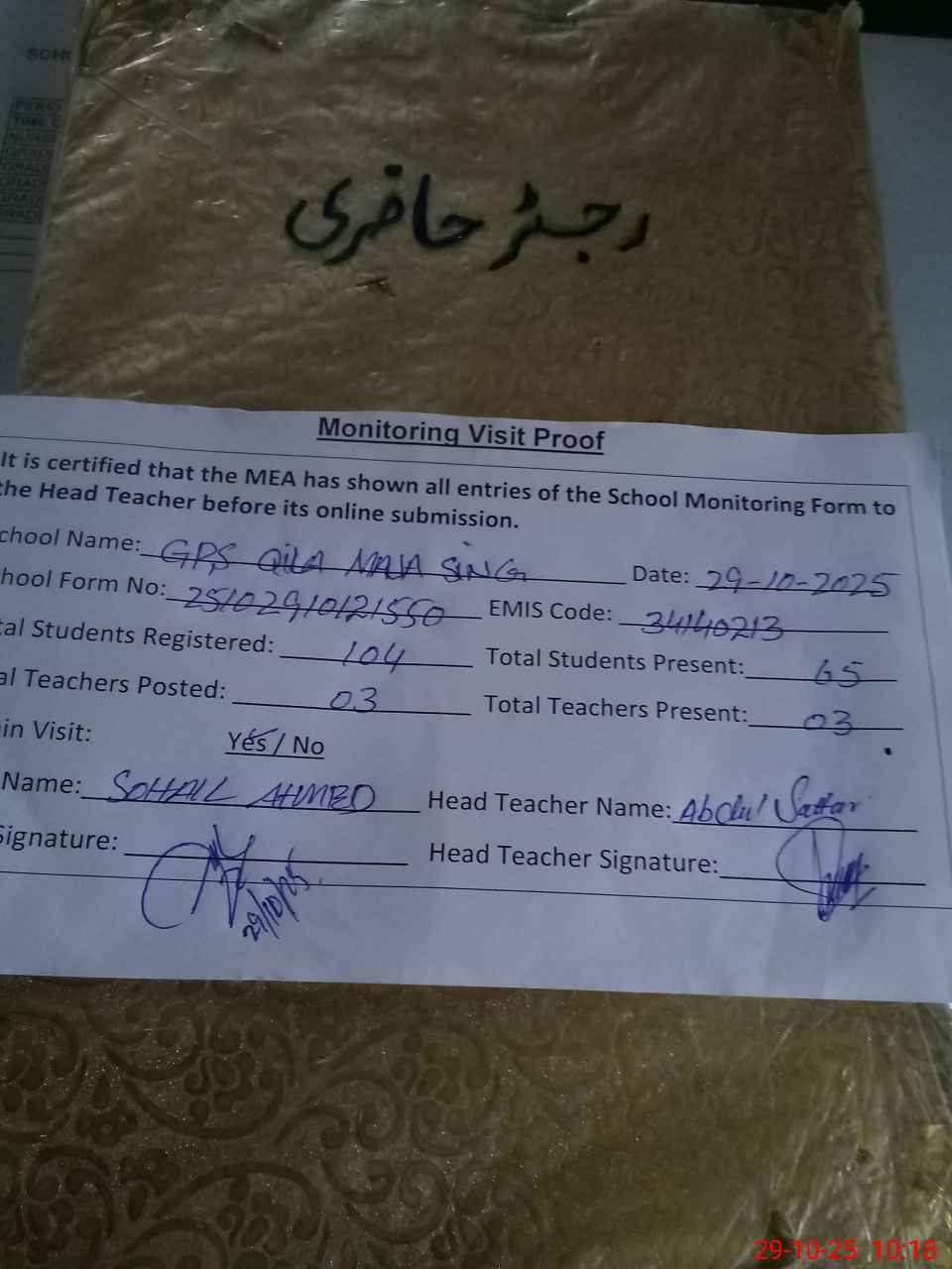 | EMIS Code: 34140213 | Name of School: GPS QILA MAJA SINGH | |||