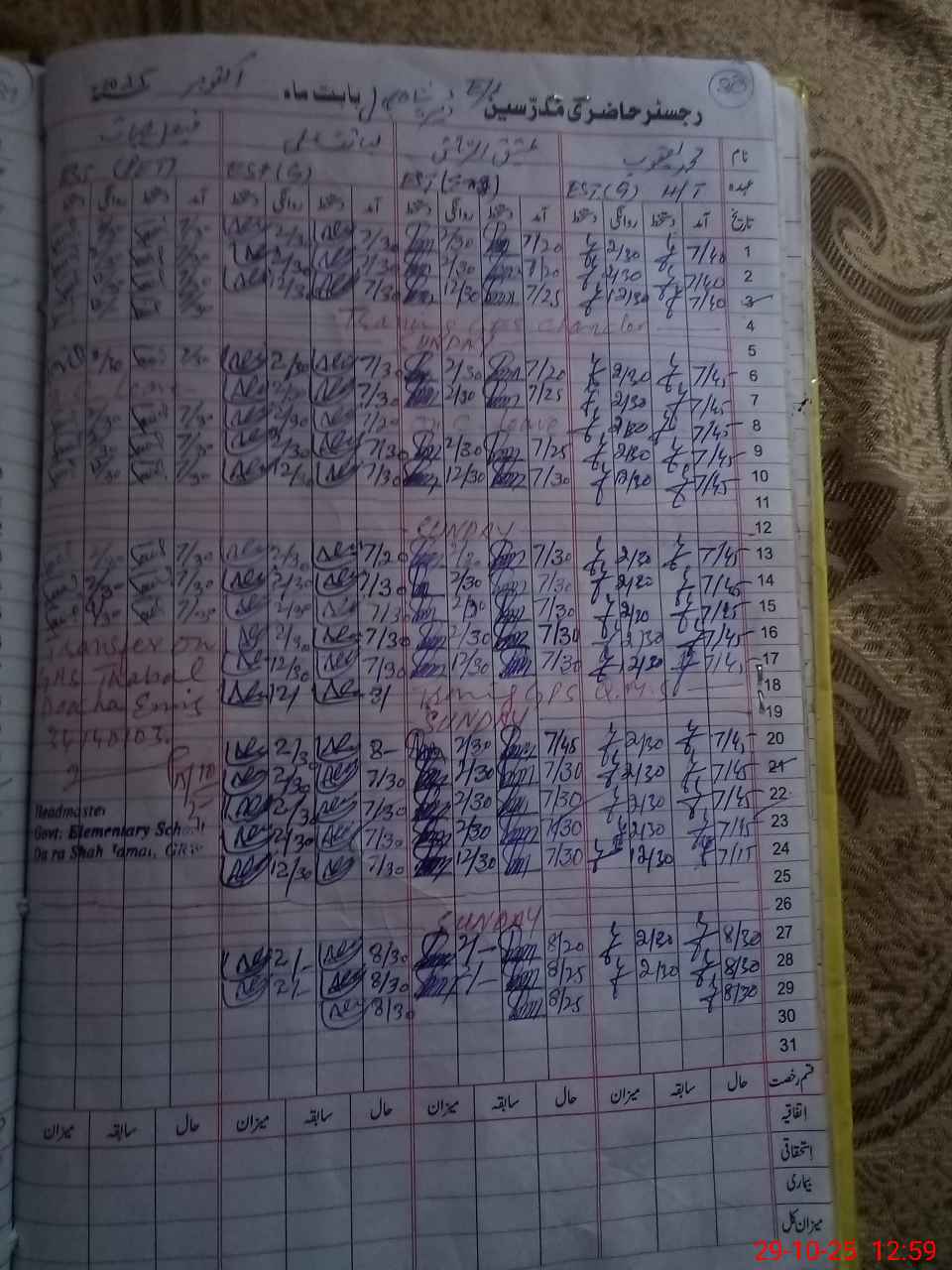 | Name: Mu**** Ya**** Designation: (School Headmaster's/Headmistress's) EST Gen Phone/Cell Number: 03**** |