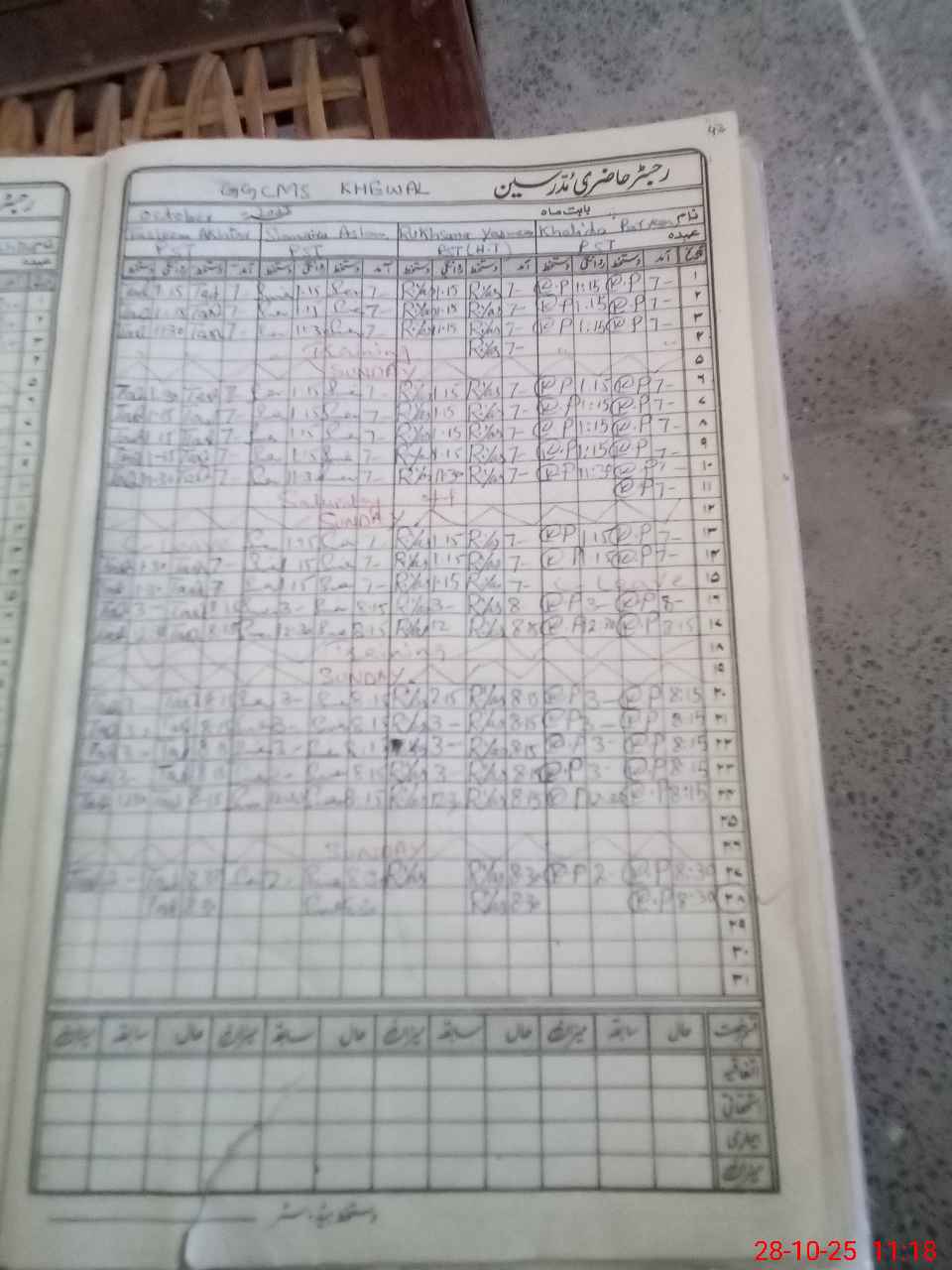 | CNIC | Full Name | Designation | R/C | Absence During Last Calender Month |