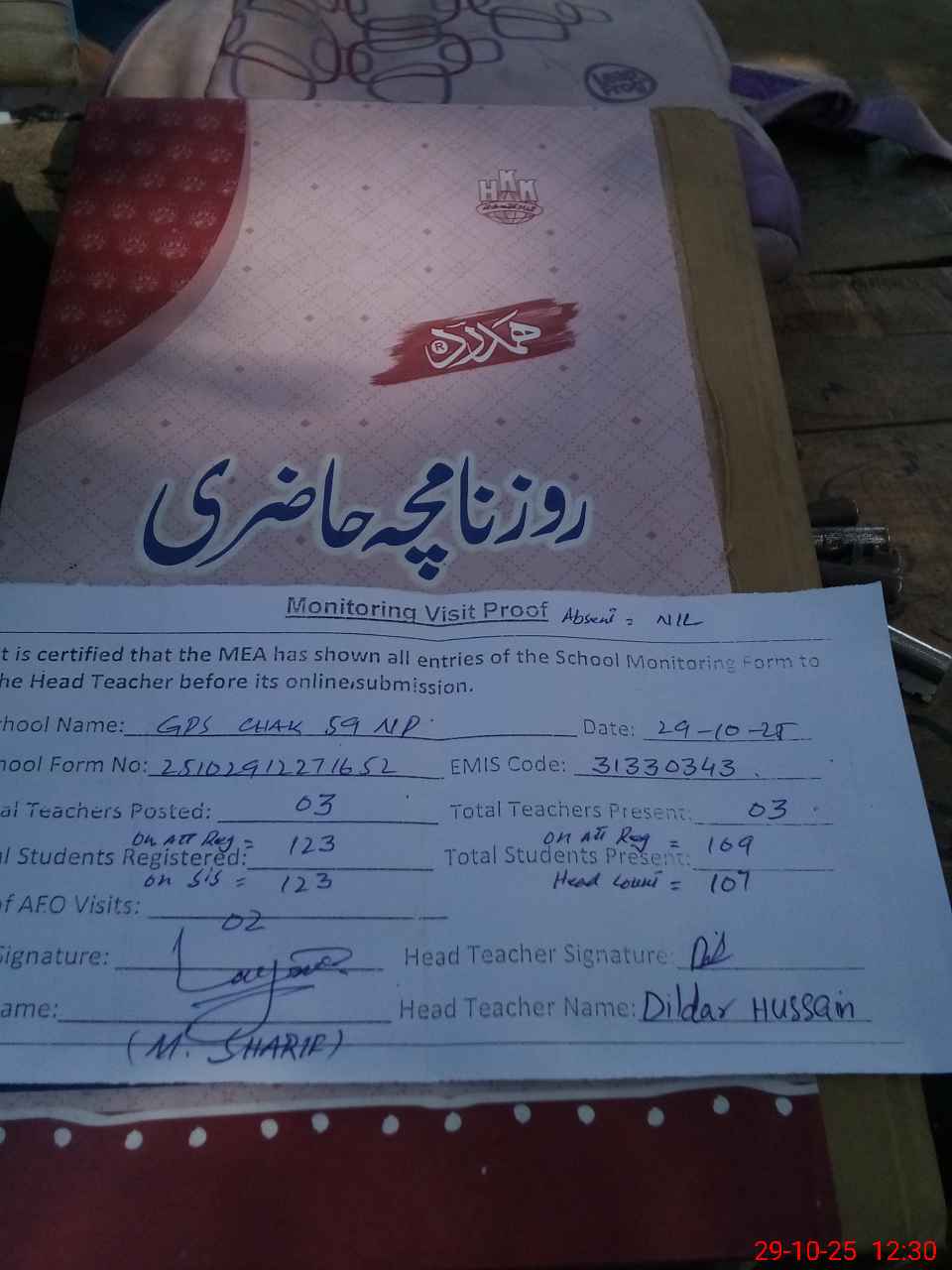| EMIS Code: 31330343 | Name of School: GPS CHAK NO. 59 NP | |||