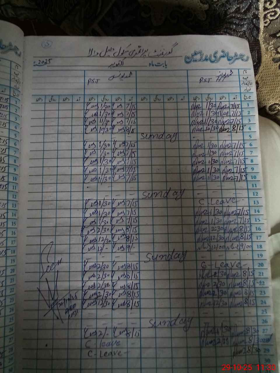 | CNIC | Full Name | Designation | R/C | Absence During Last Calender Month |
