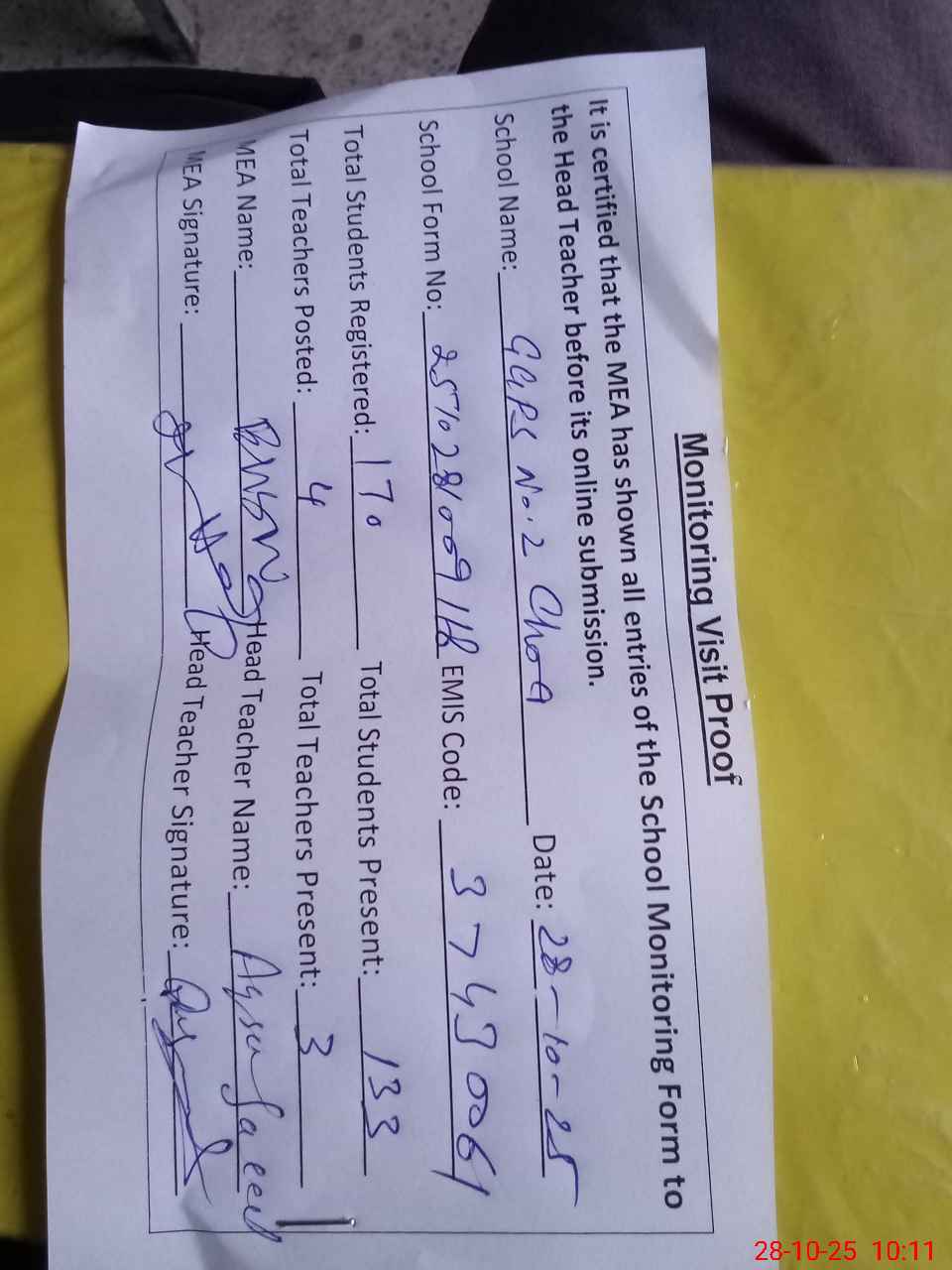 | EMIS Code: 37430061 | Name of School: GGPS NO. 2 CHOA SADIAN SHAH | |||