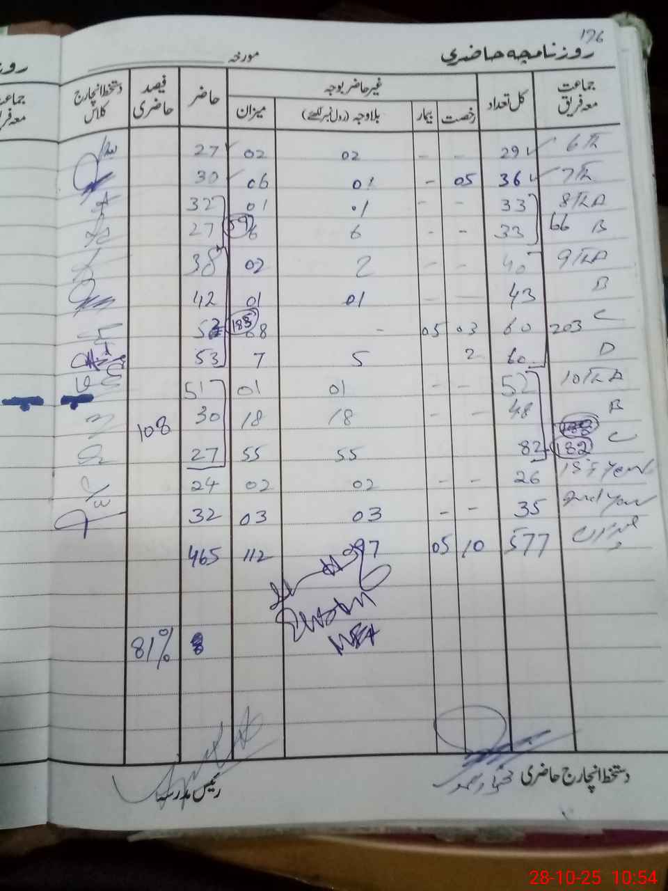 | Total Students Present | 0 | 0 | 0 | 0 | 0 | 0 | 0 | 0 | 27 | 30 | 59 | 185 | 108 | 24 | 32 | 465 |