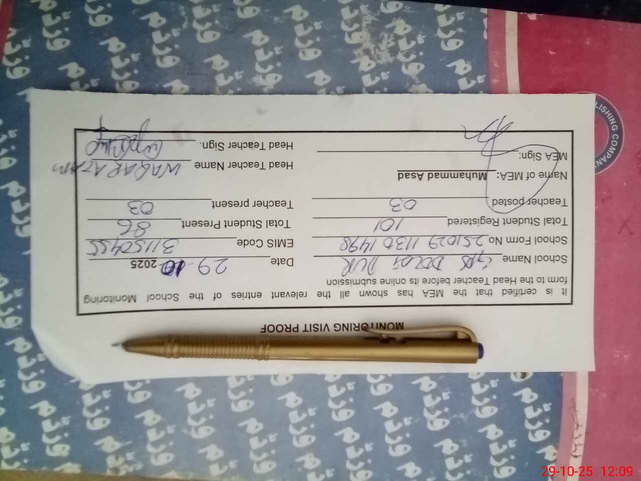 | Certified that this School was Inspected by the Undersigned MEA/DMO Today and the Information Stated Above is as Per Record. | |||||