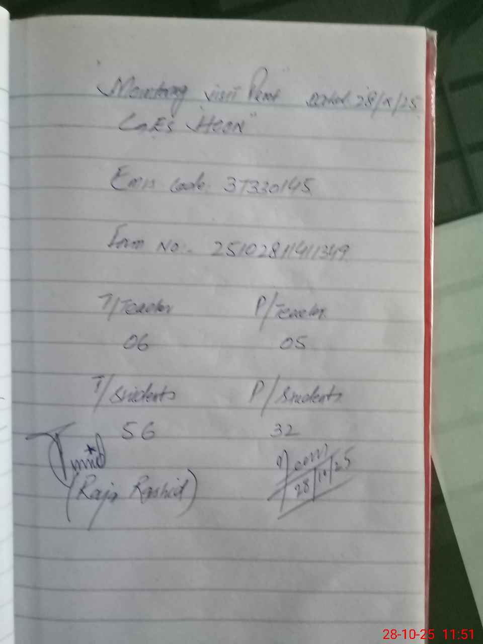 | Monitoring Date: 28-10-2025 | Start Time: 28-10-2025 11:14 AM | End Time: 28-10-2025 11:51 AM | Name of MEA: Ra**** Ra**** Al**** | |