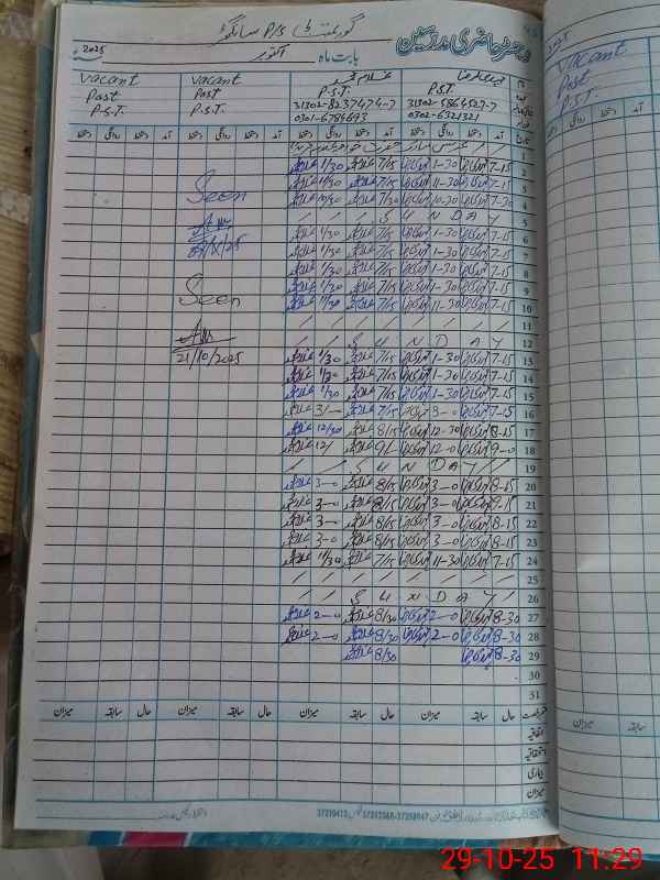 | CNIC | Full Name | Designation | R/C | Absence During Last Calender Month |