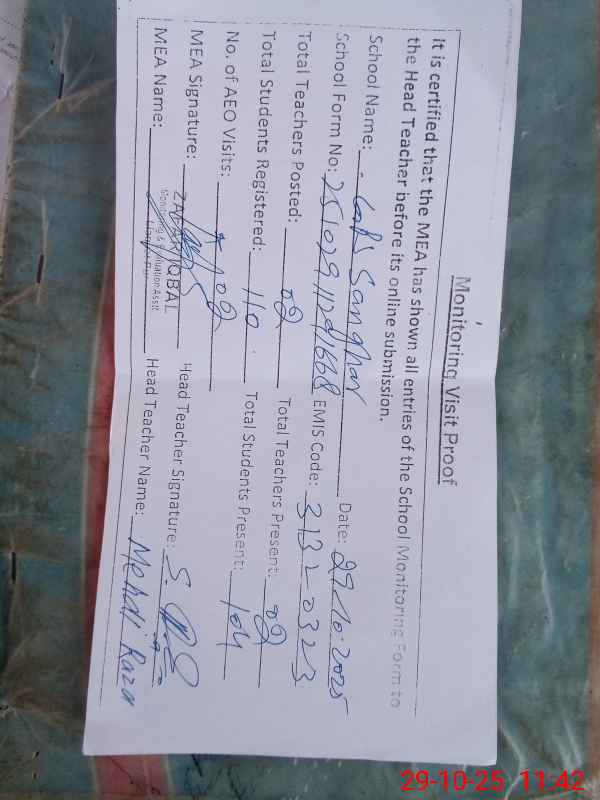 | EMIS Code: 31320323 | Name of School: GPS SANGHAR | |||