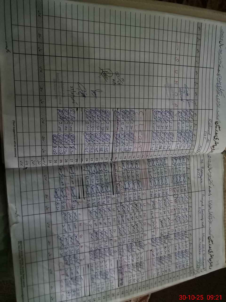 | CNIC | Full Name | Designation | R/C | Absence During Last Calender Month |