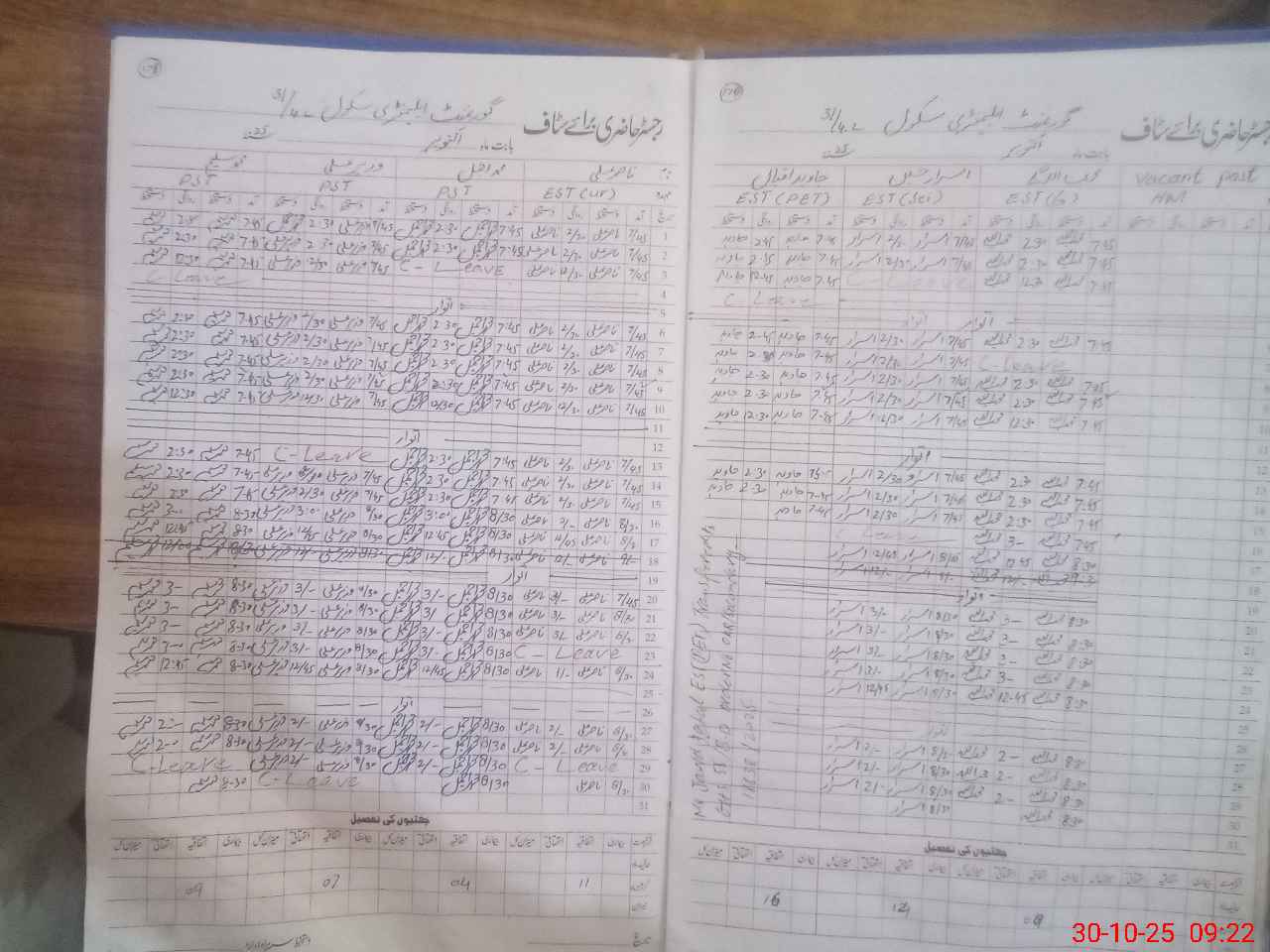 | Leave | Duty | Absent | Maternity | Medical | Ex- Pak |