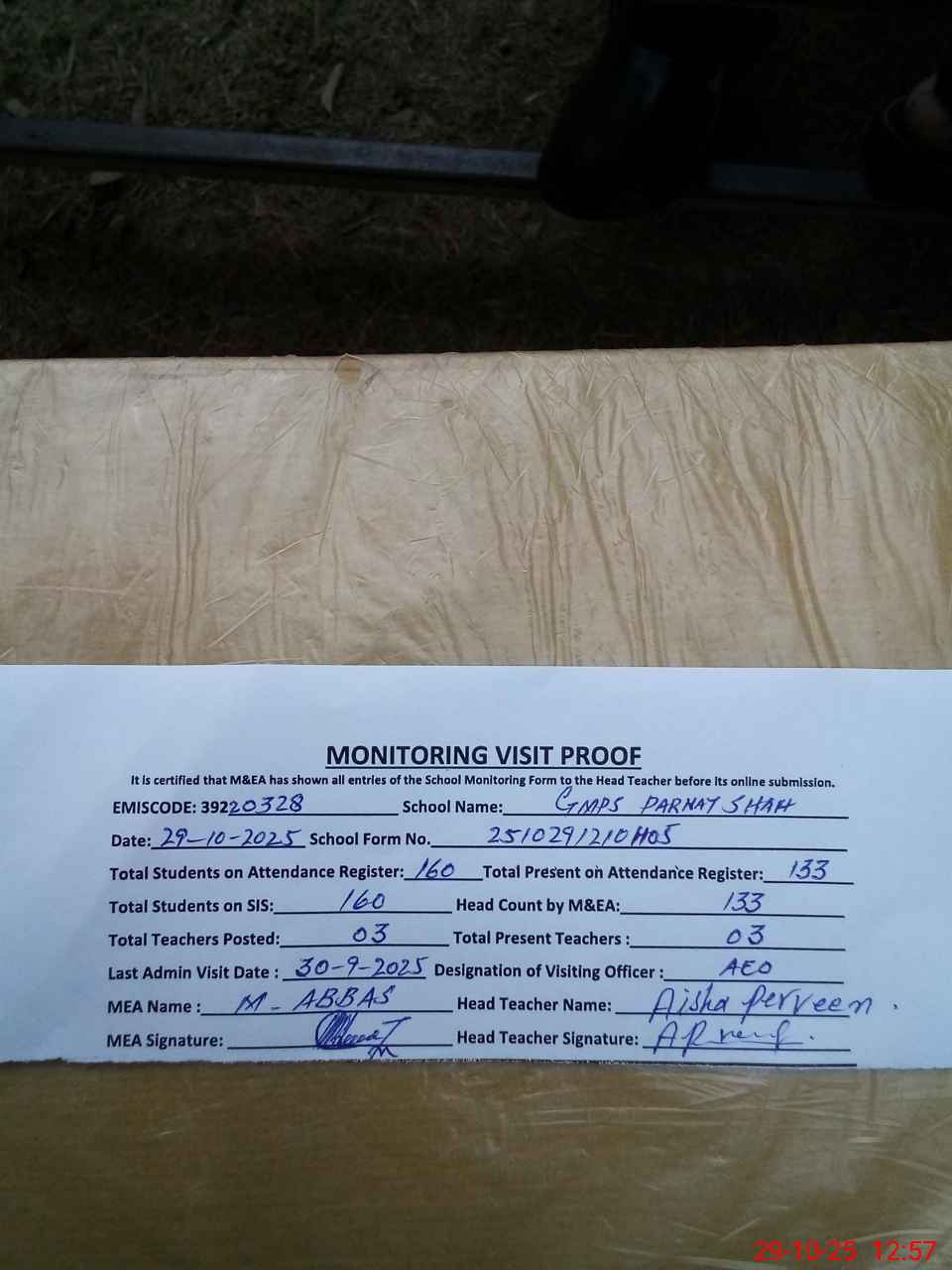 | EMIS Code: 39220328 | Name of School: GMPS PARNAY SHAH PO NOORA RATH ARIF WALA | |||