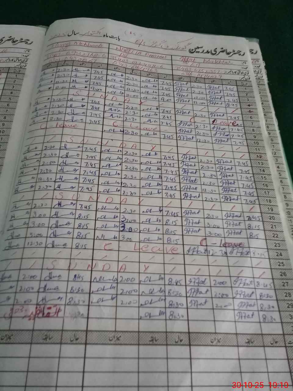 | CNIC | Full Name | Designation | R/C | Absence During Last Calender Month |