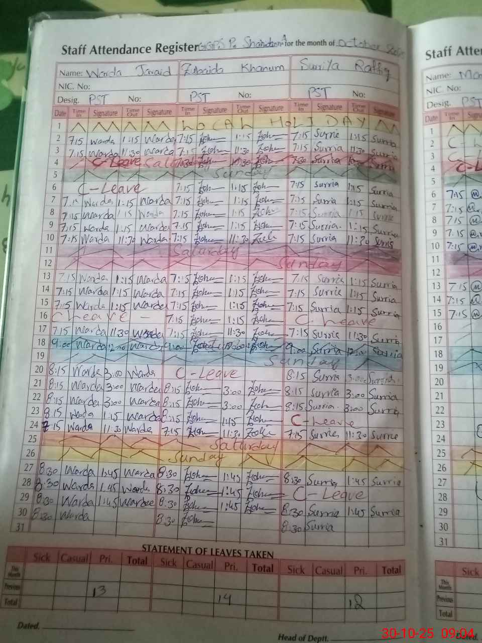 | Leave | Duty | Absent | Maternity | Medical | Ex- Pak |