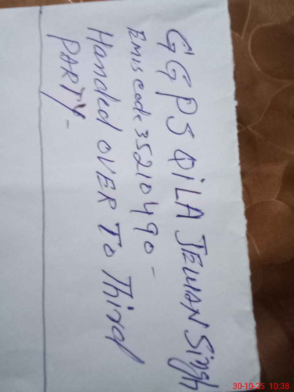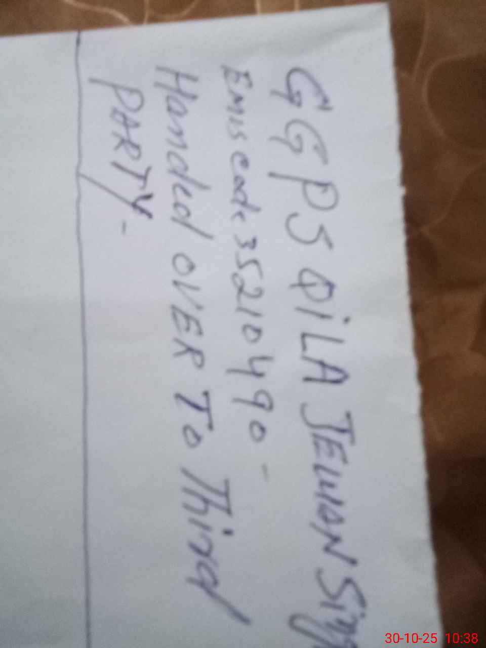 | Remarks (Use Separate Page if Required): GGPS Qila Jewan Singh Narwar Emis Code 35210490 Handed Over to third party | |||||