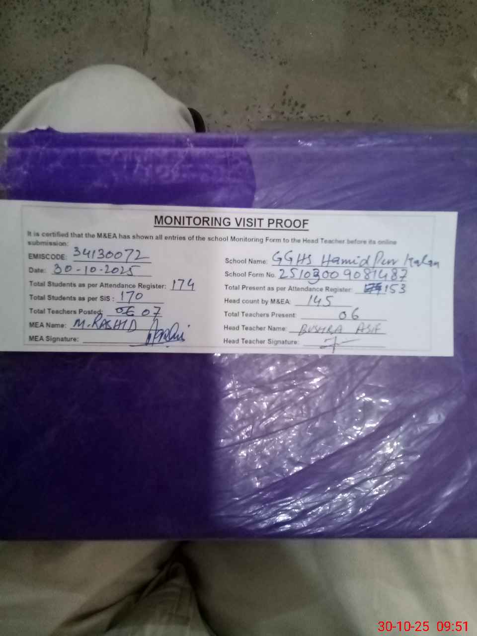 | EMIS Code: 34130072 | Name of School: GGHS HAMID PUR KALAN | |||