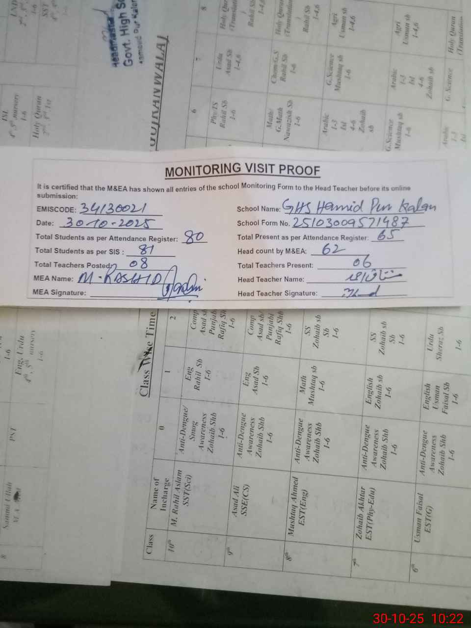 | EMIS Code: 34130021 | Name of School: GHS HAMID PUR KALAN GUJRANWALA | |||