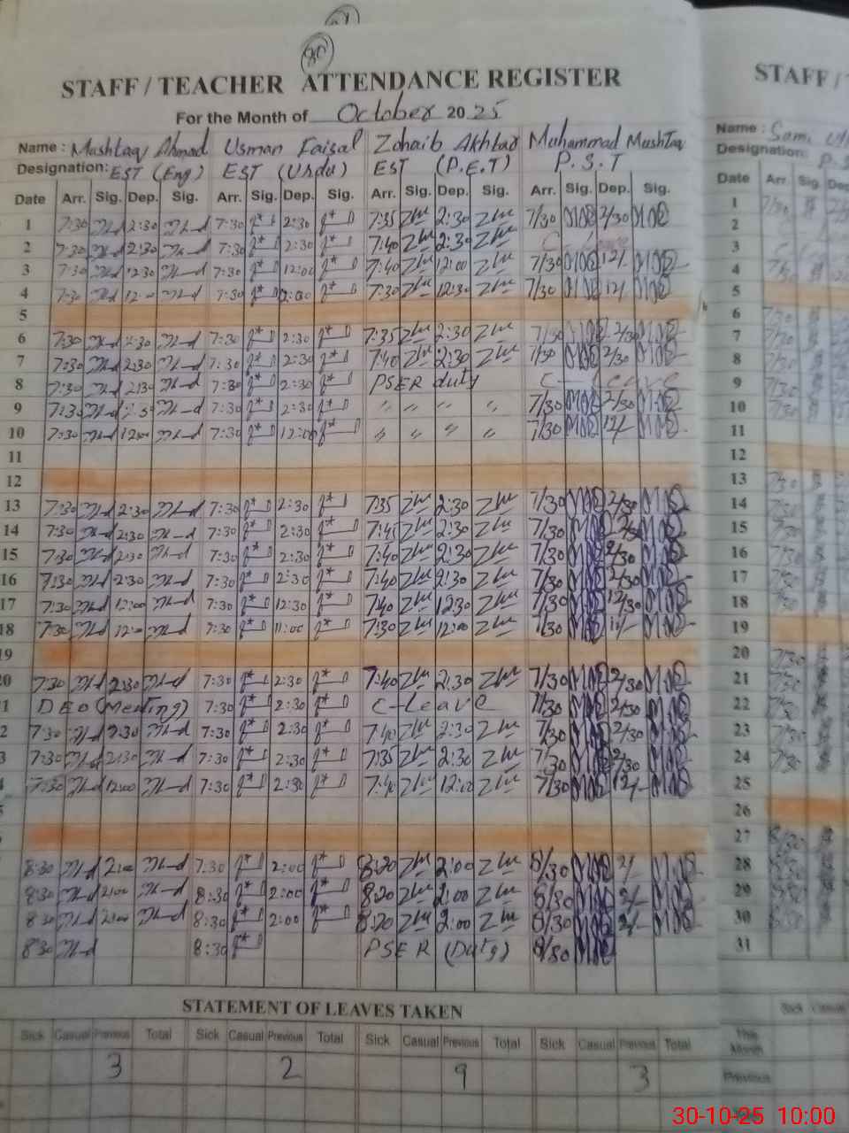 | 34**** | Ha**** Ta**** Iq**** | ESE | Contract | 0 | 0 | 0 | 0 | 0 | 0 | 0 | 0 | 0 | Absent (Un-Authorized) |
