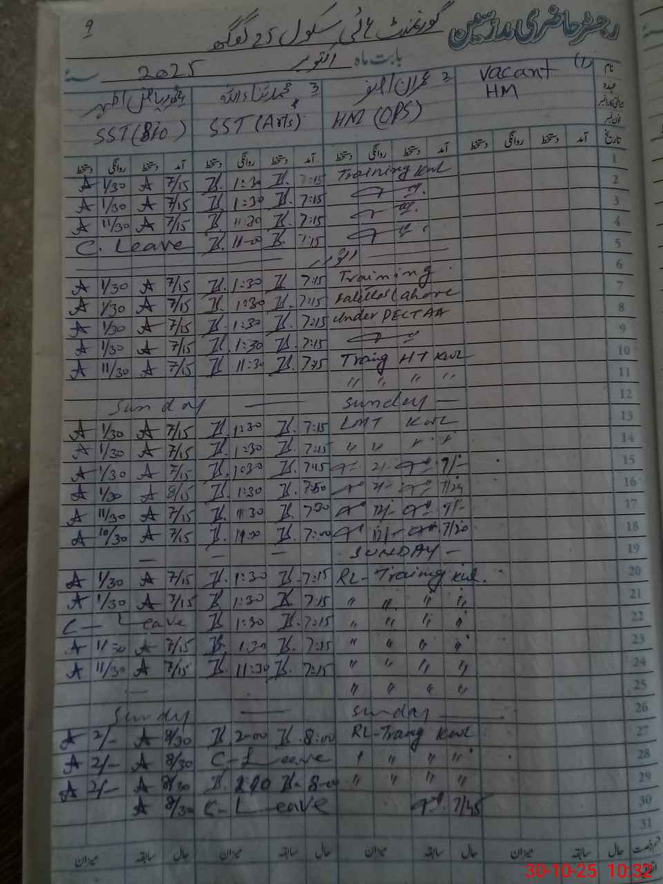 | CNIC | Full Name | Designation | R/C | Absence During Last Calender Month |