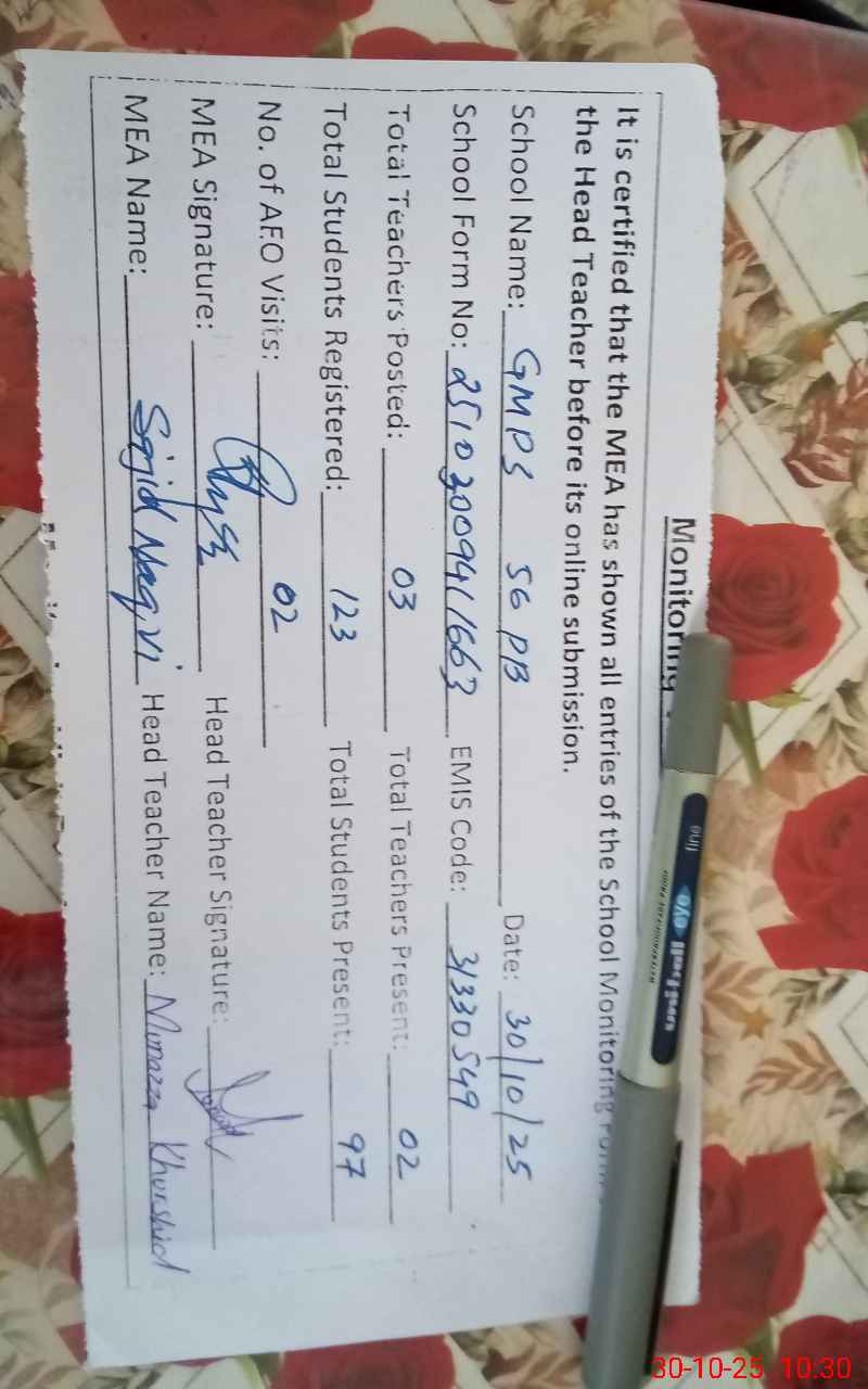 | EMIS Code: 31330549 | Name of School: GMPS CHAK 56/PB | |||