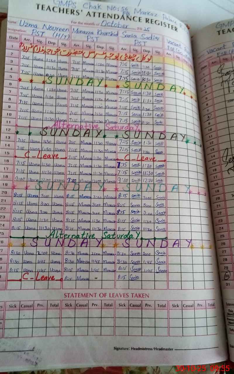 | Name: Uz**** Na**** Designation: (School Headmaster's/Headmistress's) PST Phone/Cell Number: 03**** |