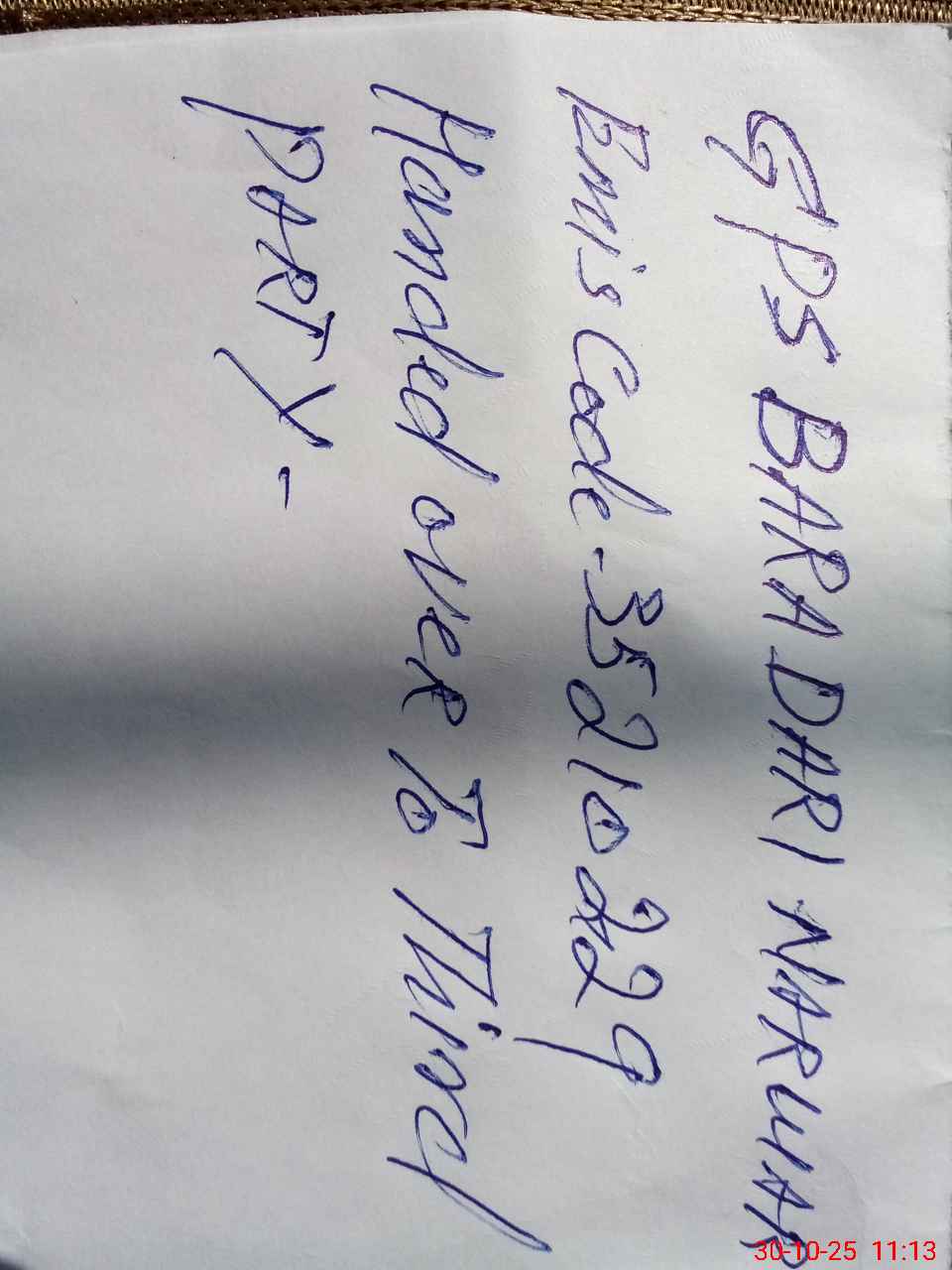 | Remarks (Use Separate Page if Required): GPS Bara Dari Narwar Emis Code 35210229 The school handed Over to third party | |||||