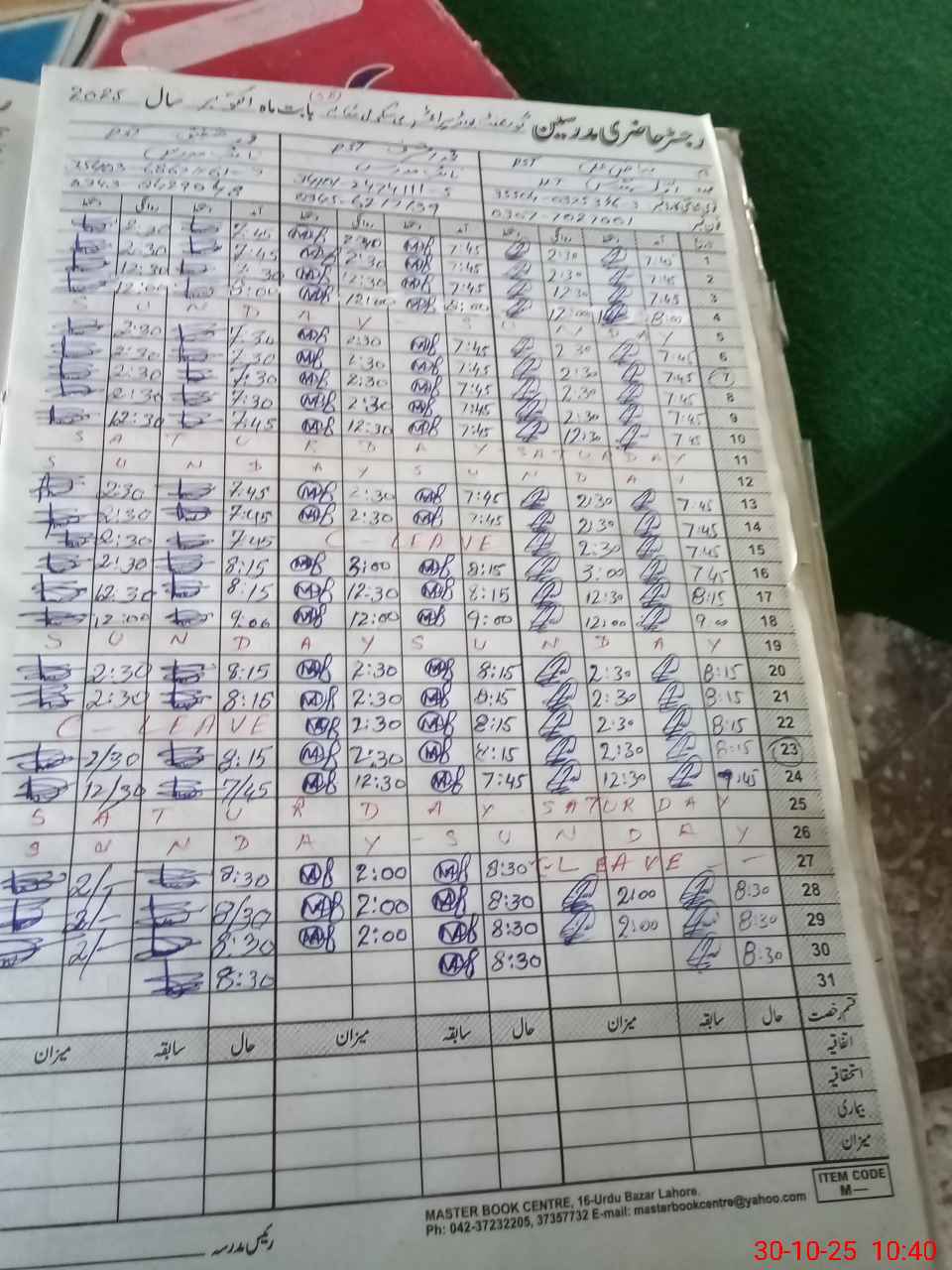 | CNIC | Full Name | Designation | R/C | Absence During Last Calender Month |