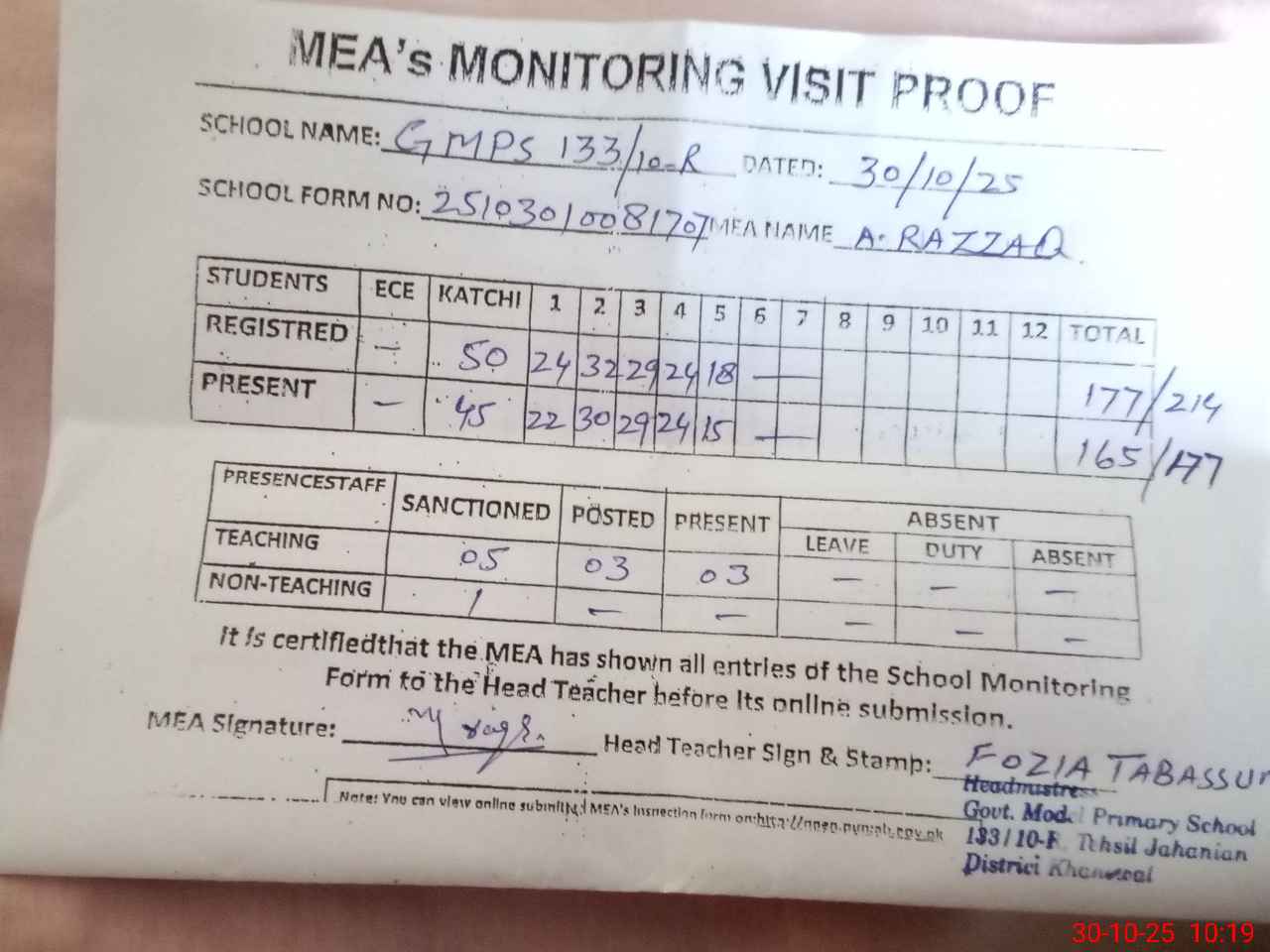 | EMIS Code: 36440499 | Name of School: GMPS 133/10-R, JAHANIAN | |||