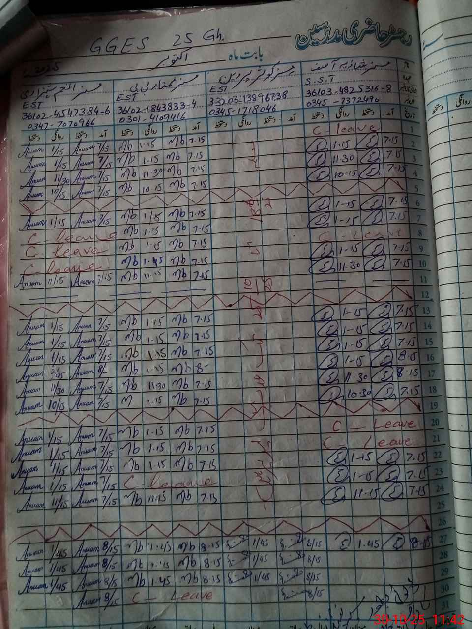 | CNIC | Full Name | Designation | R/C | Absence During Last Calender Month |