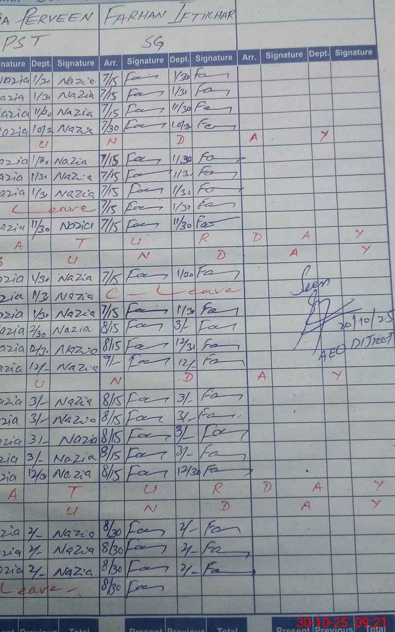 | CNIC | Full Name | Designation | R/C | Absence During Last Calender Month |