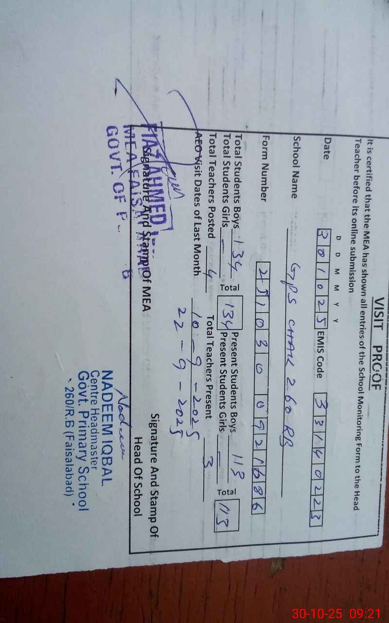 | EMIS Code: 33140223 | Name of School: GPS CHAK 260 RB | |||
