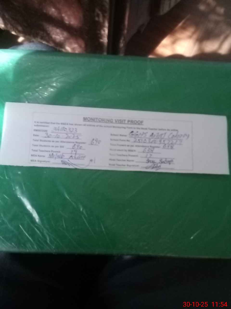 | Attendance Register | Head Teacher | MEA with School | Visit Proof |