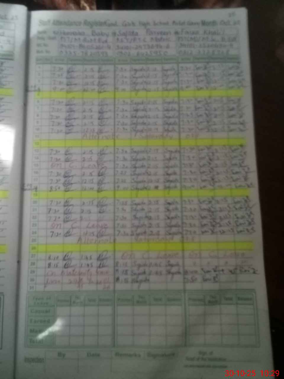 | CNIC | Full Name | Designation | R/C | Absence During Last Calender Month |