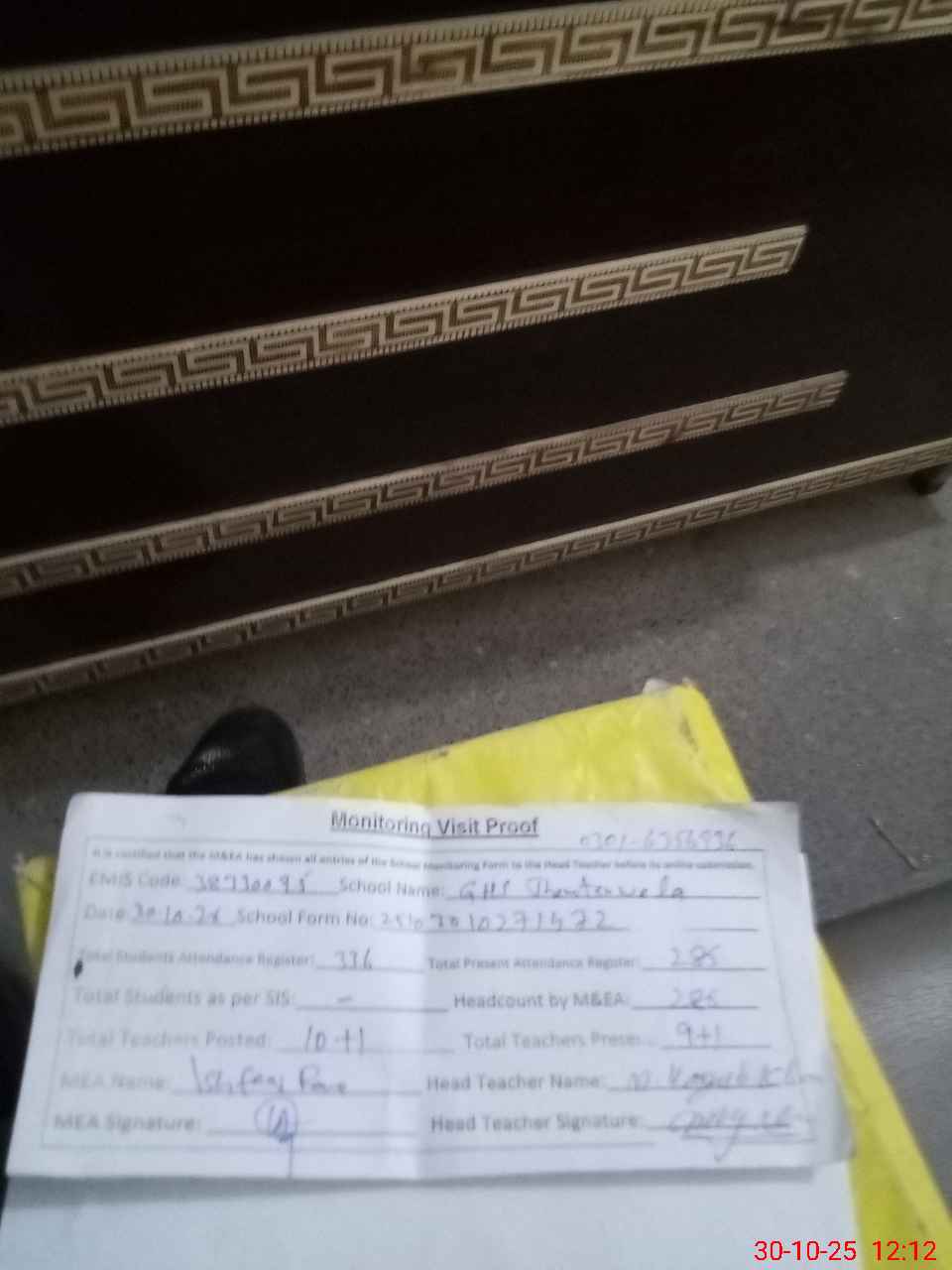 | Attendance Register | Head Teacher | MEA with School | Visit Proof |