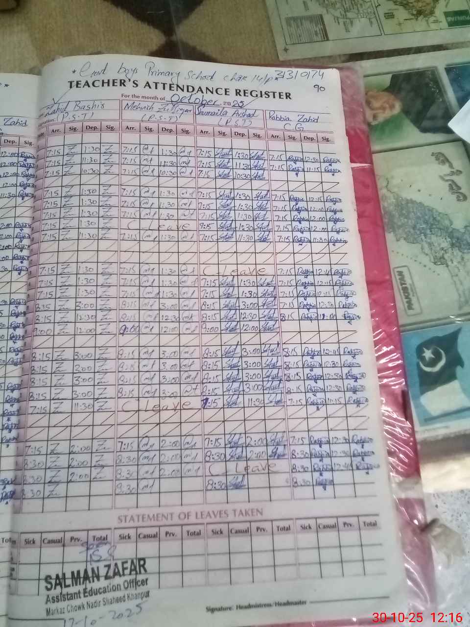 | District: RAHIMYAR KHAN | Tehsil: KHANPUR | Markaz: CHOWK NADIR SHAHEED-MALE | Level: Primary | |