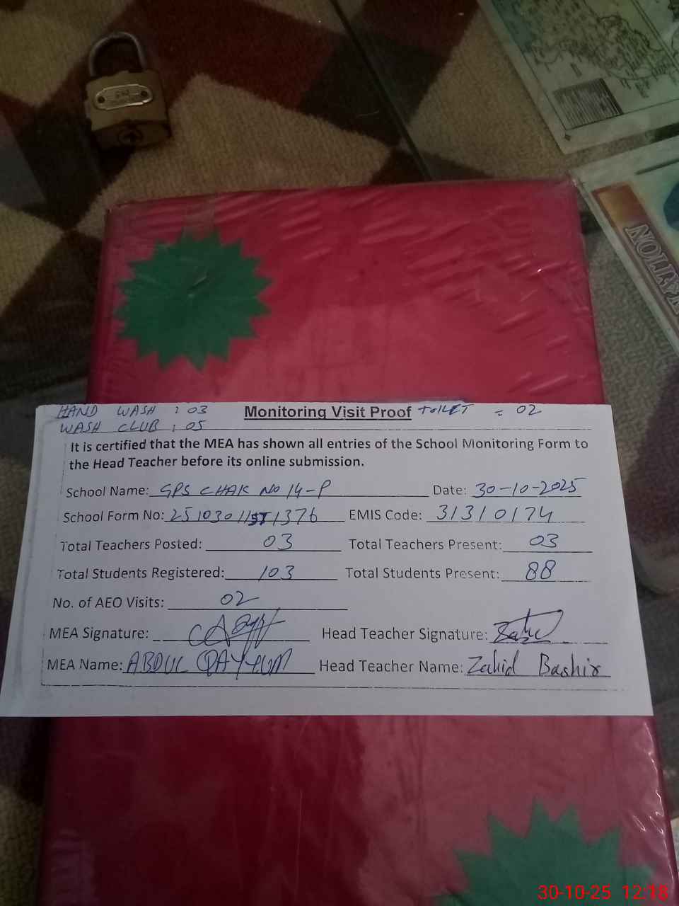 | EMIS Code: 31310174 | Name of School: GPS CHAK NO 14/P | |||