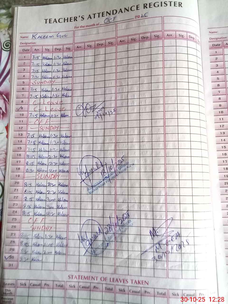 | Name: Gh**** Sh**** Designation: (School Headmaster's/Headmistress's) SST Phone/Cell Number: 03**** |