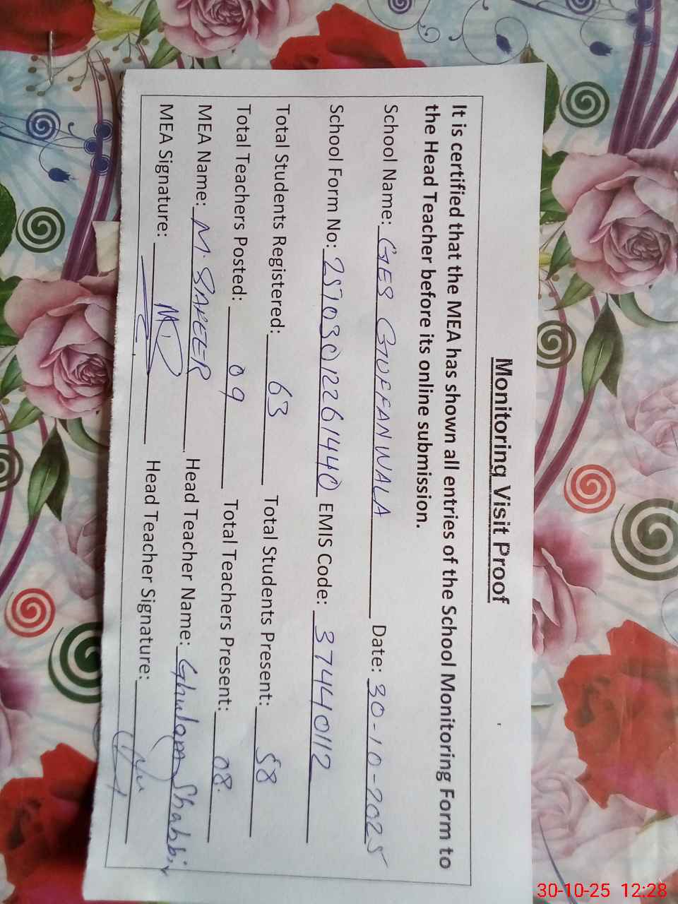 | EMIS Code: 37440112 | Name of School: GES GUFFANWALA | |||