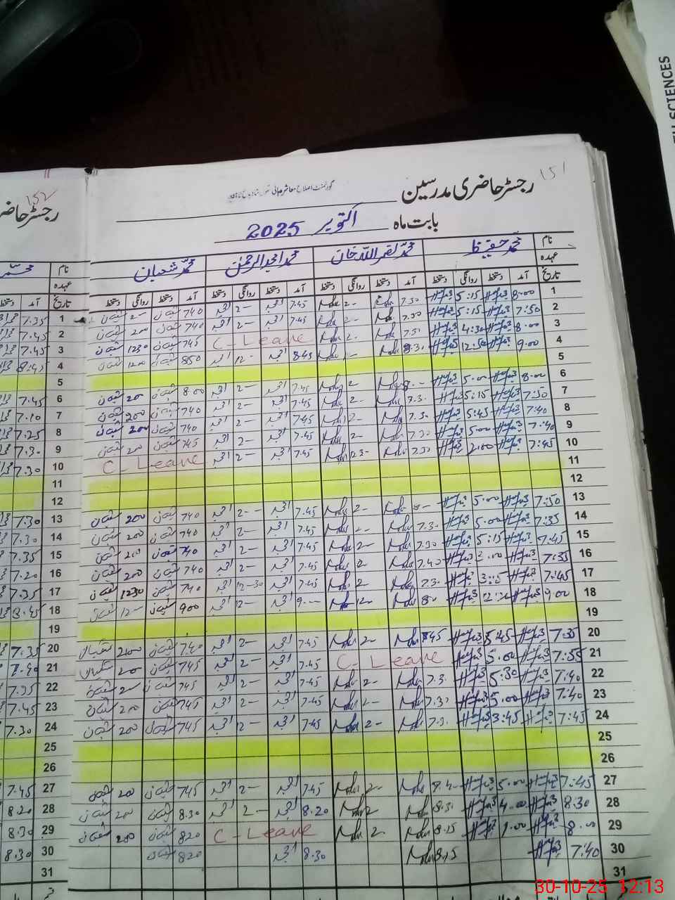 | 35**** | Na**** Sh**** | PST | Regular | 0 | 0 | 0 | 0 | 0 | 0 | 0 | 0 | 0 | Exam Duty |