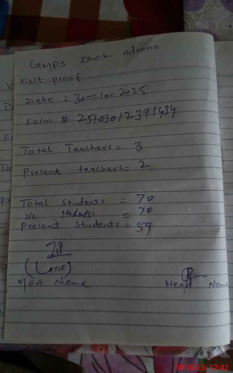 | EMIS Code: 37330638 | Name of School: GMPS DHOK ADRANA | |||