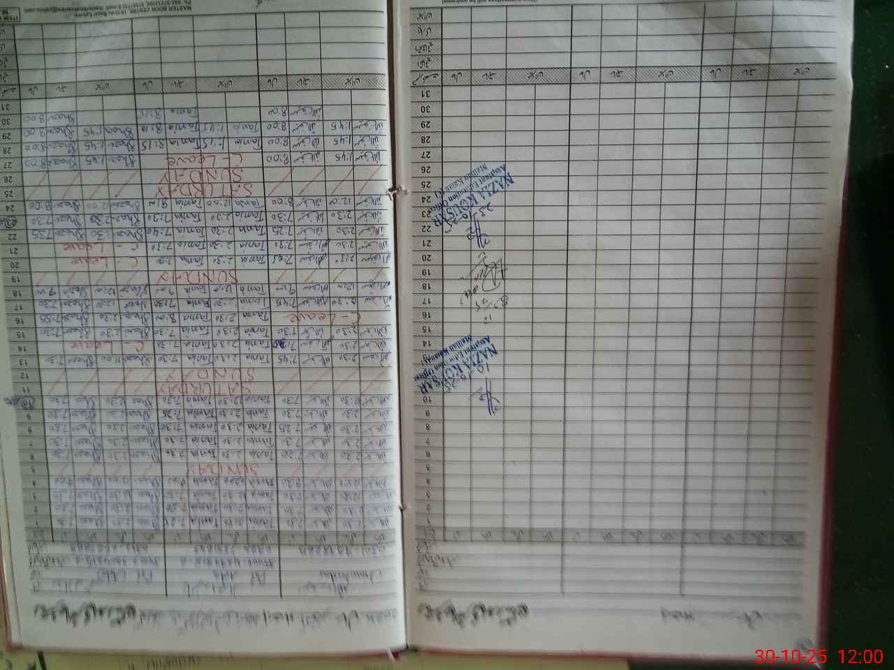 | CNIC | Full Name | Designation | R/C | Absence During Last Calender Month |